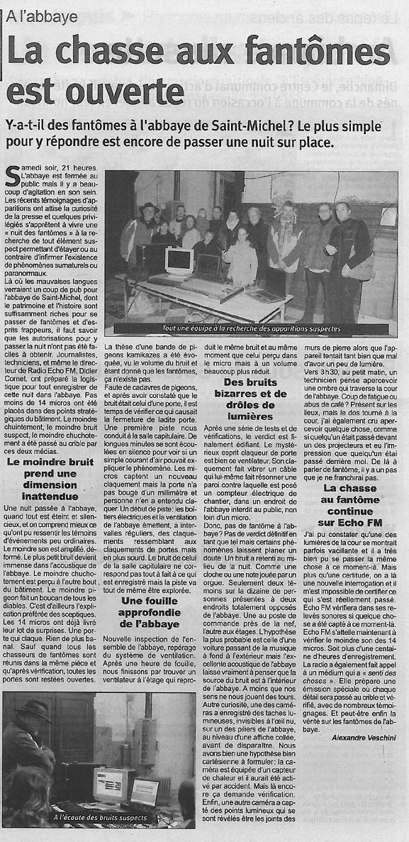 Apparemment plusieurs témoignages affirment que quelque chose d'étrange se passe à l'abbaye, d'après le journal (Le Courrier d'Hirson) :