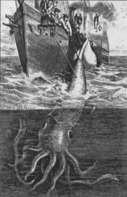 Durant le XVIIIème et le XIXème siècle, de très nombreux témoignages de marins racontent leur rencontre avec des calmars géants. Le cas le plus célèbre reste celui de l'Alecton, bâtiment français qui en 1861 rencontra une telle créature au large des îles Canaries et essaya, sans y arriver, de la hisser à bord du navire (c'est d'ailleurs cet incident qui inspira à Jules Vernes l'attaque du Nautilus par le Kraken dans son livre 20 000 lieus sous les mers).