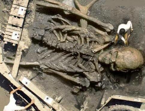 Les géants pétrifiés sont souvent associés aux « squelettes de géants » supposés avoir été exhumés à travers le monde, comme sur cette photo (en réalité un trucage)