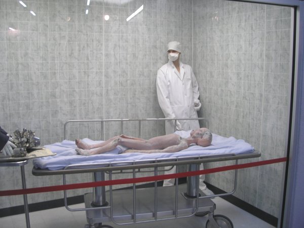 Ces images montrent en réalité un mannequin créé par Steve Johnson pour "Roswell, the UFO cover-up" ("Roswell, le mystère" en version francaise), film-documentaire de Paul Davids, qui est maintenant exposé sur un lit d'hôpital à l'International UFO Museum and Research Center de Roswell