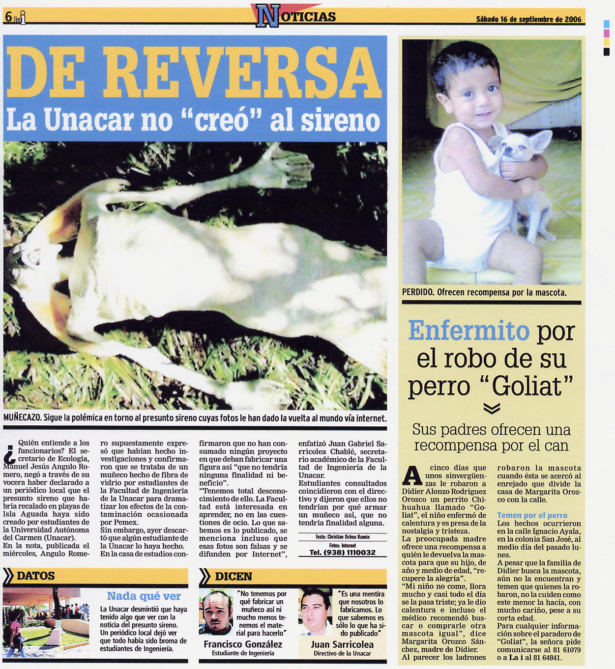 Extrait d'un magazine mexicain au sujet de la sirène qui, selon certaines sources, aurait été découverte dans l'état de Campeche
