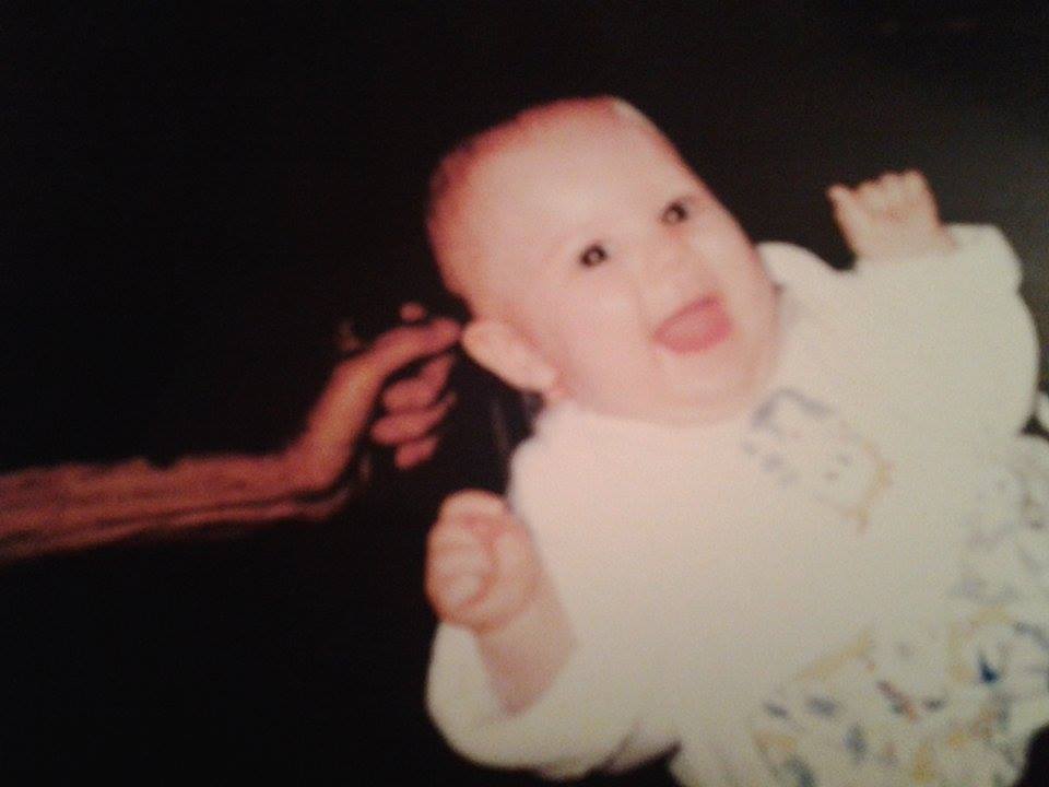 Il me semble bien que le bras se tient à une chaise - ce qui n'exclut pas que la mère de Lili ait pu la porter dans ses bras en même temps. On distingue les barreaux sous l'oreille du bébé, ainsi que l'autre montant du dossier au dessus de la tête (bien visible sur la 2ème photo avec agrandissement donné par Lili).